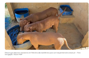 Os três cães da raça pitbull que foram recolhidos pela Polícia Militar devido a uma série de ataques a outros animais e moradores do bairro Vila Marcela, em Petrolina, foram transferidos para a Penitenciária do estado. A ação tem parceria entre os profissionais da saúde animal da prefeitura e da equipe da Penitenciária.