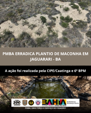 A Polícia Militar da Bahia, através da Companhia Independente de Policiamento Especializado (CIPE-Caatinga), erradicou nesta quarta-feira (23), aproximadamente 11 mil pés de maconha no município de Jaguarari, em ação conjunta com o 6° Batalhão de Polícia Militar (BPM).