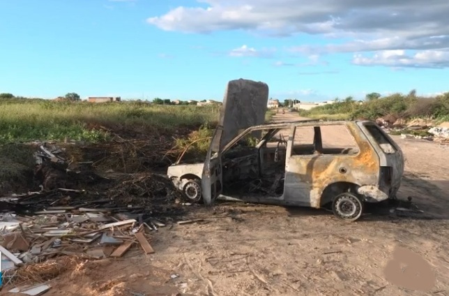 Um carro pegou fogo na tarde deste sábado (4), em um terreno baldio entre os bairros José e Maria e Padre Cícero, em Petrolina, Sertão de Pernambuco.