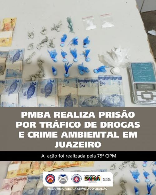 Na última sexta-feira (03), policiais da 75ª Companhia Independente de Polícia Militar (CIPM) realizaram a prisão de três suspeitos por tráfico de drogas e crime ambiental no Residencial Juazeiro II, bairro Itaberaba, em Juazeiro-BA.
