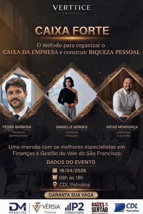 Muitos donos de pequenos e médios negócios em Petrolina enfrentam o mesmo dilema: a empresa fatura, mas o lucro não aparece no final do mês. Para transformar essa realidade, acontece no dia 18 de abril, no auditório da CDL Petrolina, a imersão Caixa Forte.