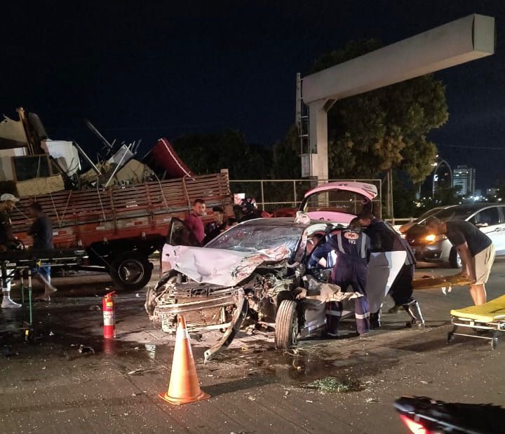 Segundo informações de pessoas que estavam no local, houve colisão entre um carro e um caminhão. O condutor do caminhão ficou preso entre as ferragens.