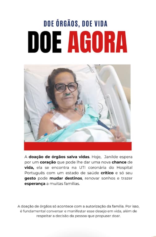Quem puder contribuir com informações sobre a possibilidade de doação de órgão, entre em contato com o Hospital Real Português, em Recife.