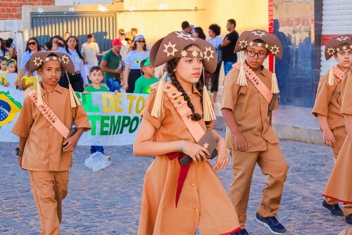 As comemorações da Independência do Brasil chegaram ao fim neste domingo (14) com o tradicional desfile cívico realizado em Santana do Sobrado, distrito de Casa Nova. O evento, promovido pela Prefeitura Municipal, por meio da Secretaria de Educação, reuniu estudantes, profissionais da educação, autoridades e a comunidade em um momento de exaltação e orgulho de ser brasileiro.