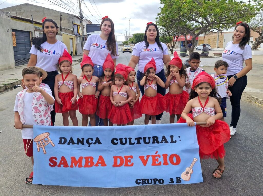 Celebrando a história e a identidade cultural de Petrolina com muita fofura, criatividade e senso de pertencimento, as crianças da Creche Nossa Infância Aquarela das Letras encantaram as ruas do bairro Rio Corrente em um desfile cívico em homenagem aos 130 anos de Petrolina, nesta sexta-feira (19). O momento, que mobilizou toda a comunidade escolar, apresentou, com leveza, aspectos importantes da cidade.