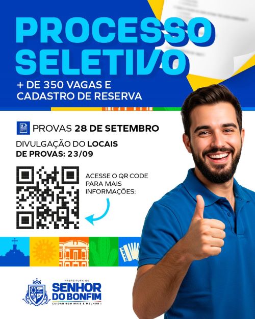 A Prefeitura Municipal de Senhor do Bonfim, vai realizar as provas do processo seletivo simplificado destinado à contratação imediata e formação de cadastro reserva no próximo dia 28 de setembro.