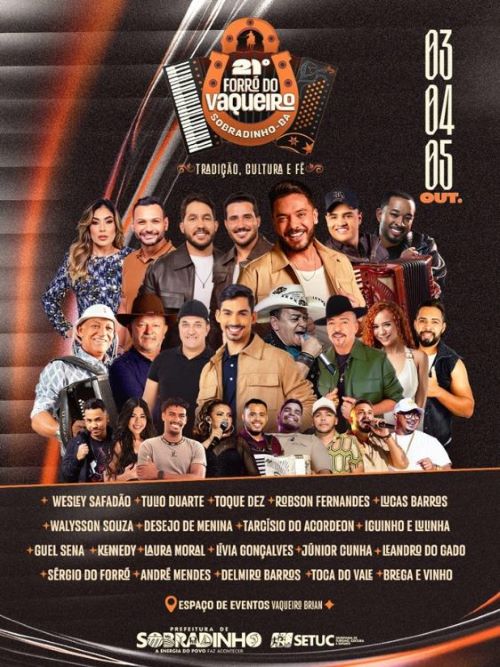 Sobradinho está em contagem regressiva para a 21 Edição do Forró do Vaqueiro que acontece neste final de semana e promete movimentar a cidade com grandes shows e homenagens aos vaqueiros, figuras importantes do sertão nordestino. Com uma programação diversificada para todos os públicos, o evento tradicional marca o calendário de festas da Bahia.