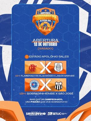 “Neste sábado, o Apolônio Sales será tomado pela energia do nosso povo e pela paixão pelo futebol. Convido todos os amantes do esporte a virem prestigiar os nossos atletas, apoiar suas equipes e vibrar juntos nessa grande festa. O Campeonato Municipal é mais do que uma disputa, é um encontro de talentos, amizades e emoções que só o futebol é capaz de proporcionar,” disse o secretário.