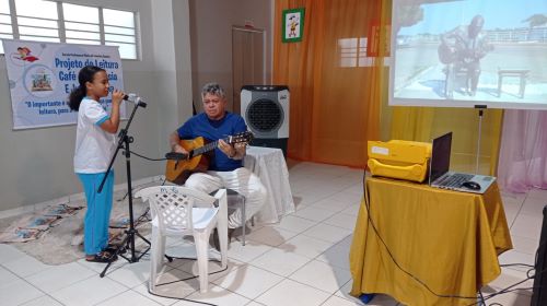 Os estudantes da Escola Municipal Professora Maria de Lourdes Duarte viveram uma experiência especial, nesta sexta-feira (17). Os alunos do 4º e 5º ano do Ensino Fundamental participaram de uma aula-show do projeto “Juazeiro por Juazeiro”, com o cantor e compositor Maurício Dias, o Mauriçola. A iniciativa, que integra o programa Juá Literária, apresenta a história cultural de Juazeiro e da Bossa Nova aos estudantes.