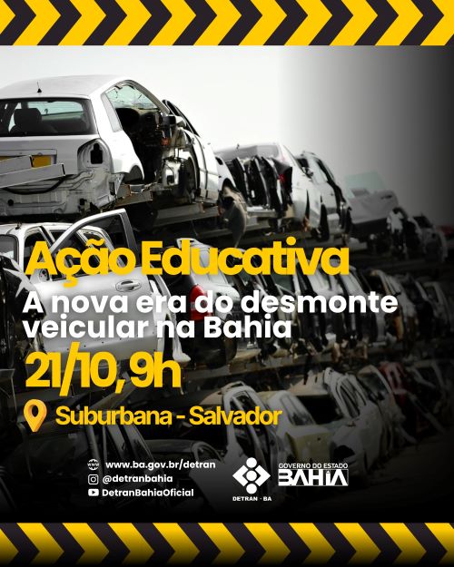 O Governo do Estado, através do Detran (Departamento Estadual de Trânsito), da Secretaria de Segurança Pública (SSP) e de outros órgãos realizam na próxima semana uma ação educativa que visa conscientizar e credenciar empresas que atuam com desmonte de veículos e vendas de peças. Denominada “Credenciar para se beneficiar” a operação faz parte da nova era do desmonte na Bahia. O credenciamento garante que as empresas operem conforme as normas do departamento e da Lei Federal nº 12.977/2014 (Lei do Desmonte) evitando autuações, interdições e sanções.
