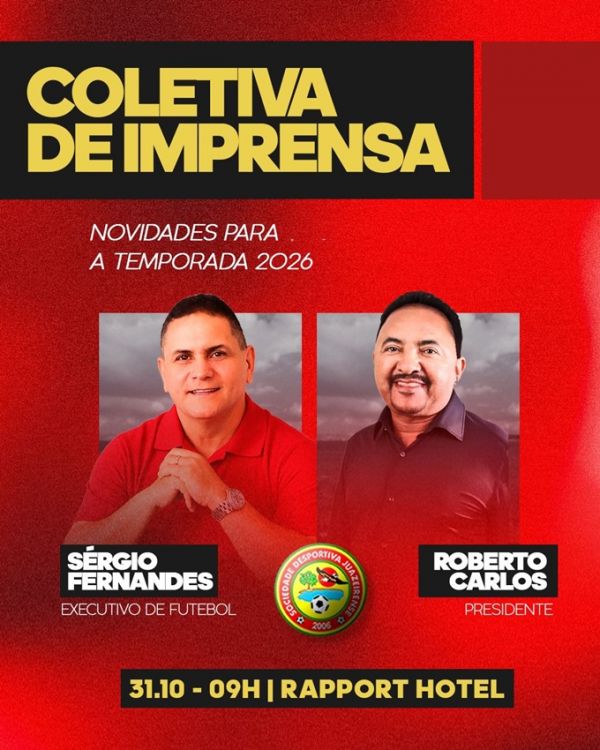 A Juazeirense apresenta nesta sexta (31), às 9h, no Rapport Hotel, as novidades para a temporada 2026. Estarão presentes o presidente Roberto Carlos e o executivo de futebol Sérgio Fernandes.