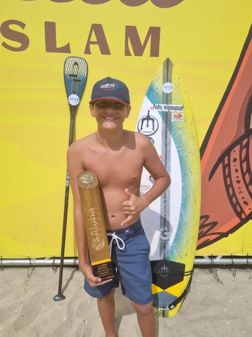 Quem olha o currículo de Pedro Emmanuel da Veiga, de 14 anos, tem dificuldade em reconhecer sua pouca idade. São dez títulos brasileiros (nas modalidades sup wave e sup race) e, em participações em mundial, ele já ficou em 5º lugar em sua categoria e 9º entre os profissionais.
