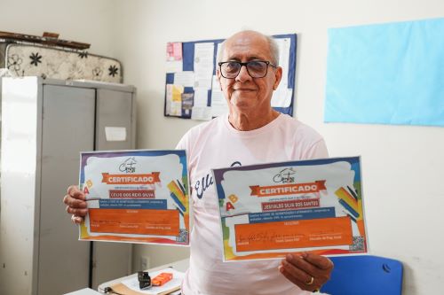 De acordo com Trajano Lino, o certificado representa mais do que um documento formal. “Os que mais frequentam é que recebem um certificado de alfabetização. Em seis meses, a gente dá o direito de entregar o certificado a cada um deles. Eu coloco nesse certificado um ajuste maior para que eles possam trabalhar mais ainda no letramento”, explica o educador social.