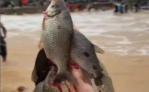 A imagem mostram que para muitos, a chuva não trouxe apenas o alívio para o clima, mas também garantiu o peixe na mesa. (Foto: Reprodução).