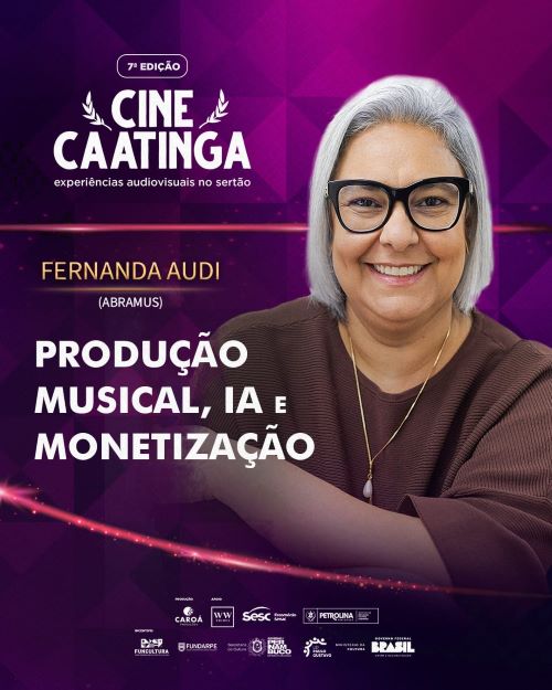 A relação entre inteligência artificial, produção musical, direitos autorais e novas formas de monetização será tema de uma das palestras do “Cine Caatinga – Experiências Audiovisuais no Sertão”, festival que acontece em Petrolina (PE). A atividade será conduzida por Fernanda Audi, diretora de operações da Abramus (Associação Brasileira de Música e Artes), reconhecida nacionalmente por sua atuação na área de gestão coletiva de direitos autorais. O evento será nesta quinta-feira, 05, às 19h, no Teatro do Sesc da cidade (Centro).