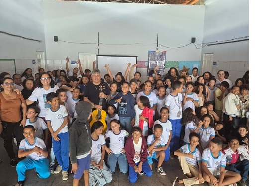 A manhã da terça-feira (17) foi marcada não só por música, mas também pela história cultural de Juazeiro e da Bossa Nova, fazendo com que os alunos do 5º ano não desgrudassem os olhos de cada palavra dita, rissem com as histórias contadas por Mauriçola e, inclusive, se imaginassem artistas de sucesso.
