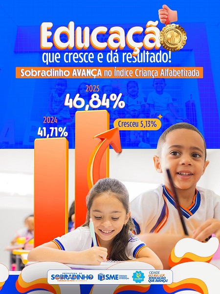 O fortalecimento dos projetos educacionais e dos programas voltados à alfabetização, promovidos pela Prefeitura de Sobradinho, por meio da Secretaria Municipal Educação, continua revelando seus avanços positivos. Após a condecoração com o Selo Ouro no Compromisso com a Alfabetização, o município comemora o crescimento no Índice Criança Alfabetizada em 2025.