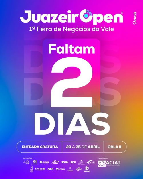Faltam apenas dois dias para a estreia da JuazeirOpen – 1ª Feira de Negócios do Vale do São Francisco, e a expectativa já movimenta toda a região. Em um espaço de mais de 4 mil metros quadrados, o evento reunirá uma ampla diversidade de produtos e serviços, além de uma programação que inclui palestras, mesas-redondas, ambientes de interação e entretenimento. É um cenário ideal para networking e geração de grandes negócios.
